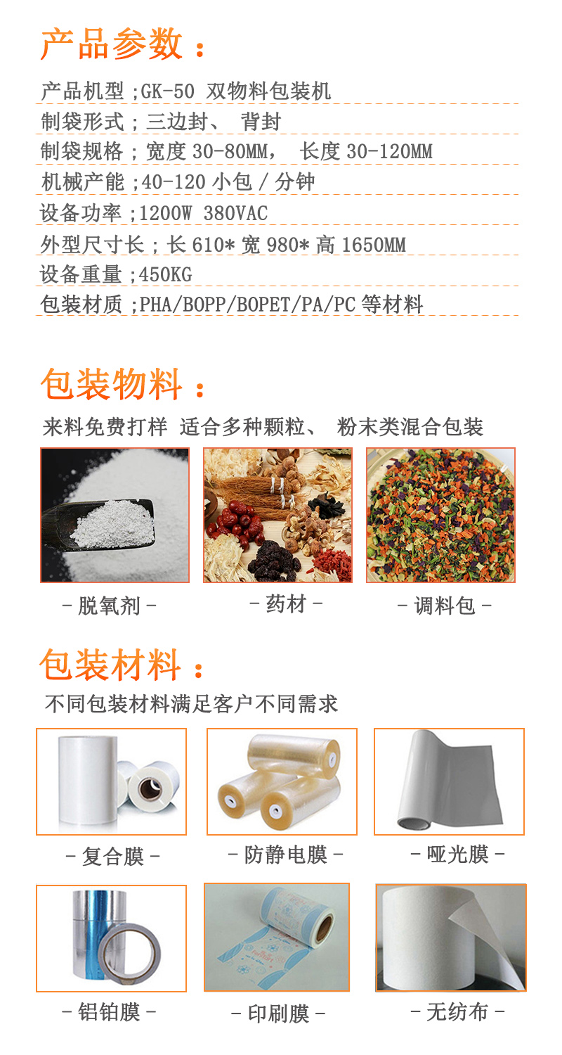 雙物料保鮮劑包裝機(jī)一體機(jī)