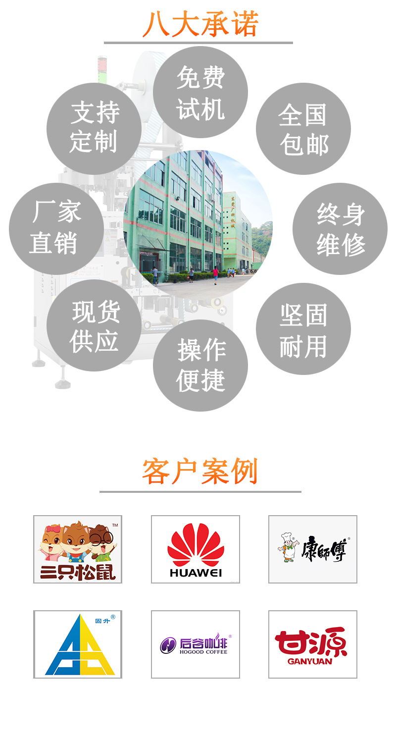 1.彩色觸摸屏和穩(wěn)定可靠的雙軸高精度輸出的PLC控制,制袋、計(jì)量、充填、封合、打碼、切袋一次完成。